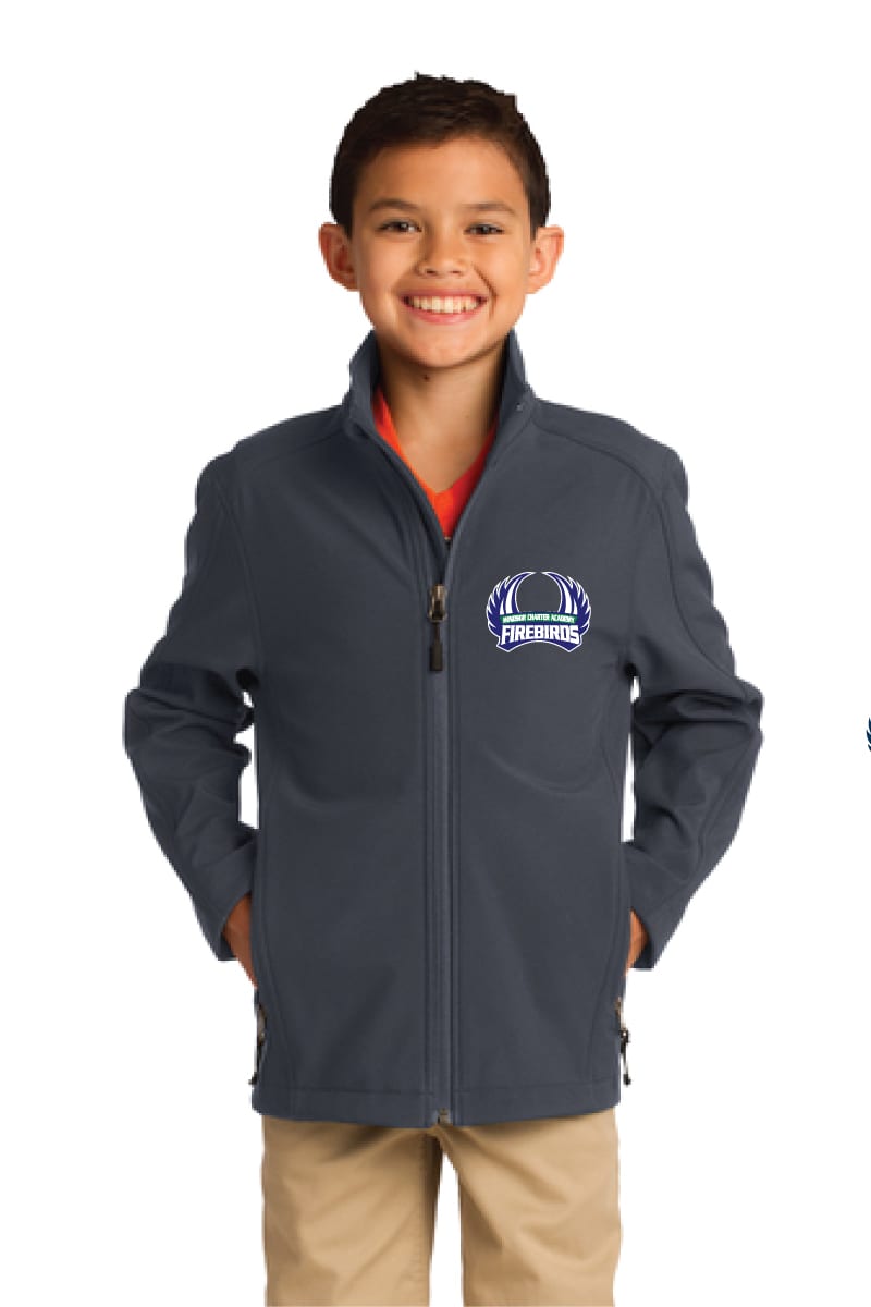 Windsor Charter Academy Spirit Pack Y317 Port Authority Youth Core Soft Shell Jacket with left pocket location embroidery.